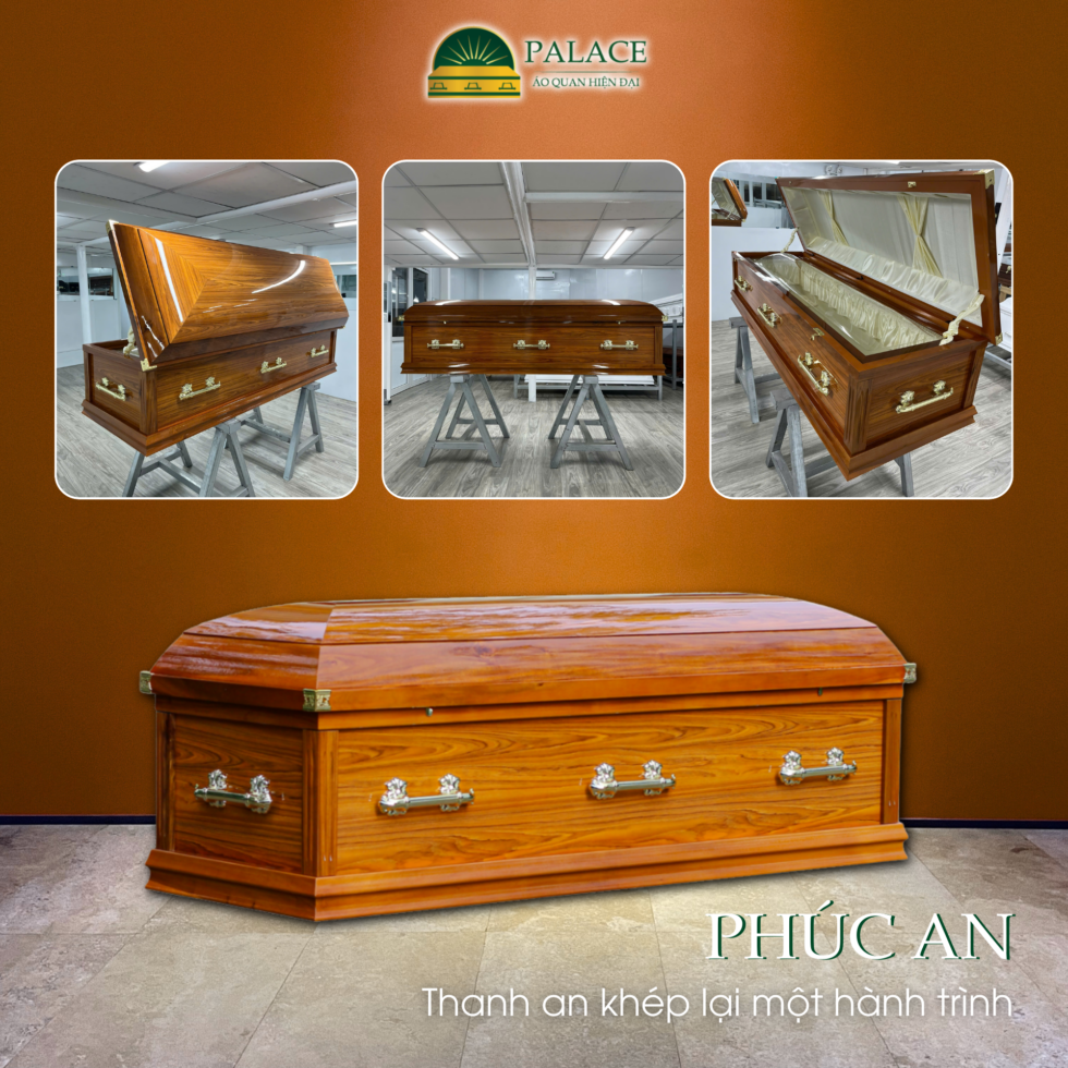 Với hơn 25 năm đồng hành cùng các gia đình tại TP.HCM, DVTL PHƯỚC THIỆN THỌ luôn được biết đến như một trong những đơn vị tổ chức tang lễ hiện đại tiên phong và uy tín hàng đầu. PALACE trân trọng khi các thiết kế thuộc BST Phúc Cung – dòng áo quan một nắp hiện đại mang phong cách Châu Âu – được DVTL PHƯỚC THIỆN THỌ và gia đình tin tưởng lựa chọn trong những khoảnh khắc trang trọng và đầy ý nghĩa trong hành trình tiễn biệt.
