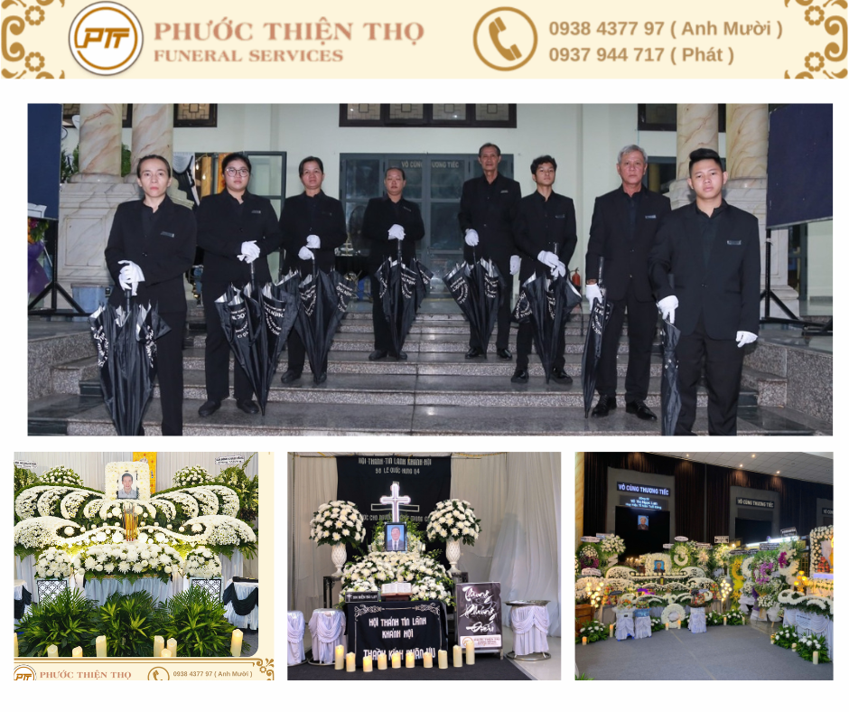 Với nhiều năm kinh nghiệm và sự tận tâm, Phước Thiện Thọ tự hào là đơn vị cung cấp dịch vụ mai táng uy tín hàng đầu tại TPHCM. Hãy để chúng tôi đồng hành cùng bạn trong những khoảnh khắc quan trọng này. Hotline: 0938.43.77.97