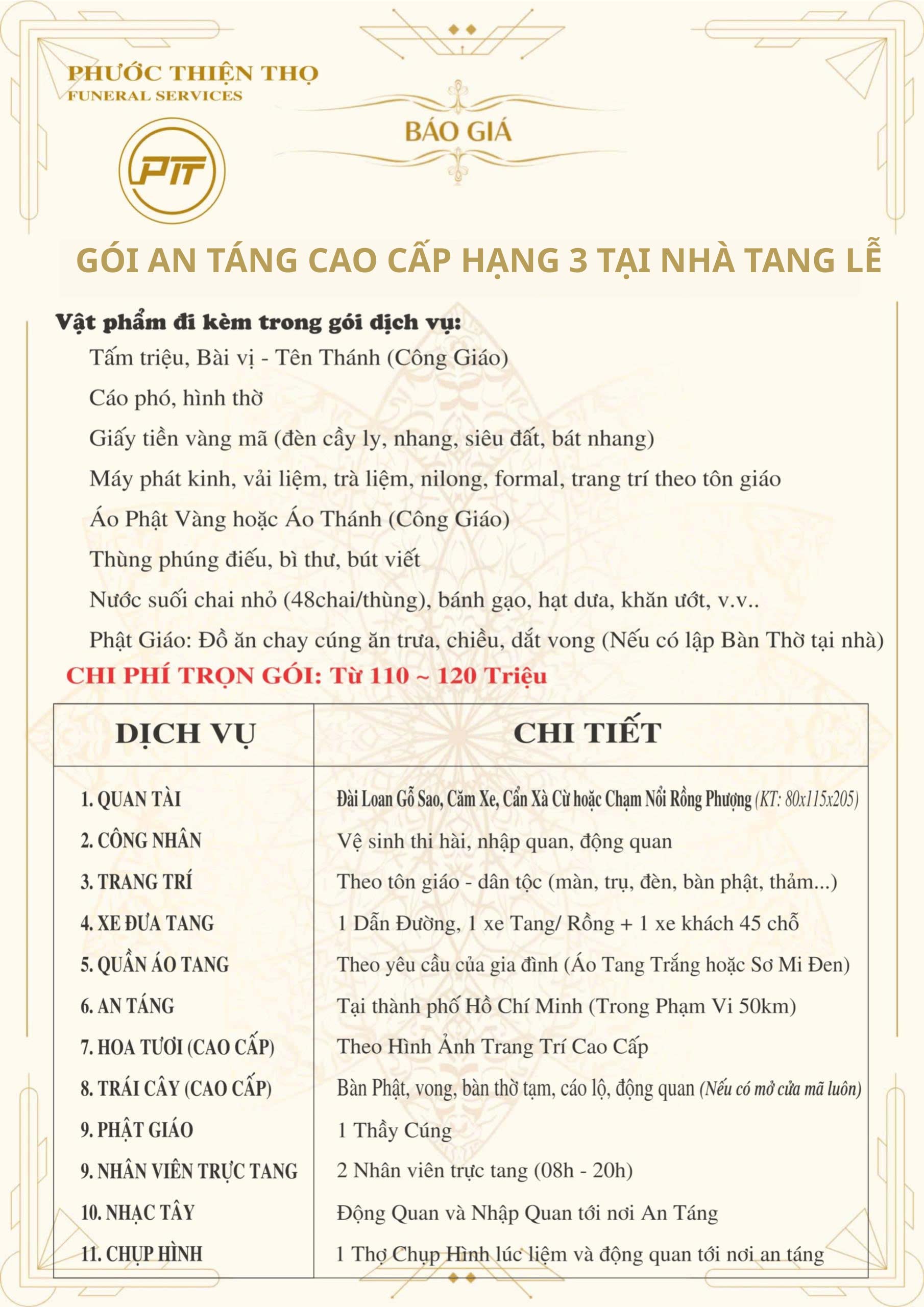 Gói An Táng Cao Cấp Hạng 3 Tại Nhà Tang Lễ Chỉ Từ 110 ~ 120 Triệu